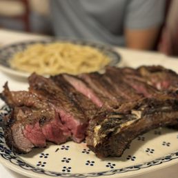 First rule of eating Florentine Steak. It comes rare so don't ask for it to be cooked any other way. Second rule of eating Florentine Steak. Even if you don't normally eat your steaks rare, do what the Romans do and go with the flow. My sister and one of my nephews don't like it rare but they tried it and loved it. Super popular spot for Florentine Steak. Since we didn't make any reservations, we arrived when it opened for dinner and were seated right away. There is an upstairs and downstairs. Service was outstanding from start to finish. As busy as they were, our waiter was patient in explaining that we should order in kilos. Our mouths were watering with anticipation. That first bite was everything and more. Why can't we have this back home?? Order a pasta or two to go along with your steak. As I am writing this review, I'm salivating. We got to visit two places for Florentine steak in Florence and we all thought this was better than the other one. We also ordered a plate of Salami and Pastrami. OMG, best salami ever and I'm not even a huge fan of salami. It's just different from the ones I have had all my life back in the states. A must visit on your trip to Italy.